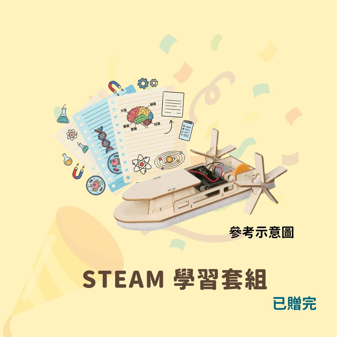 - 每個月配送4個主題講義+4組實驗教具+4個主題的線上課程,配送3個月,總共12個主題